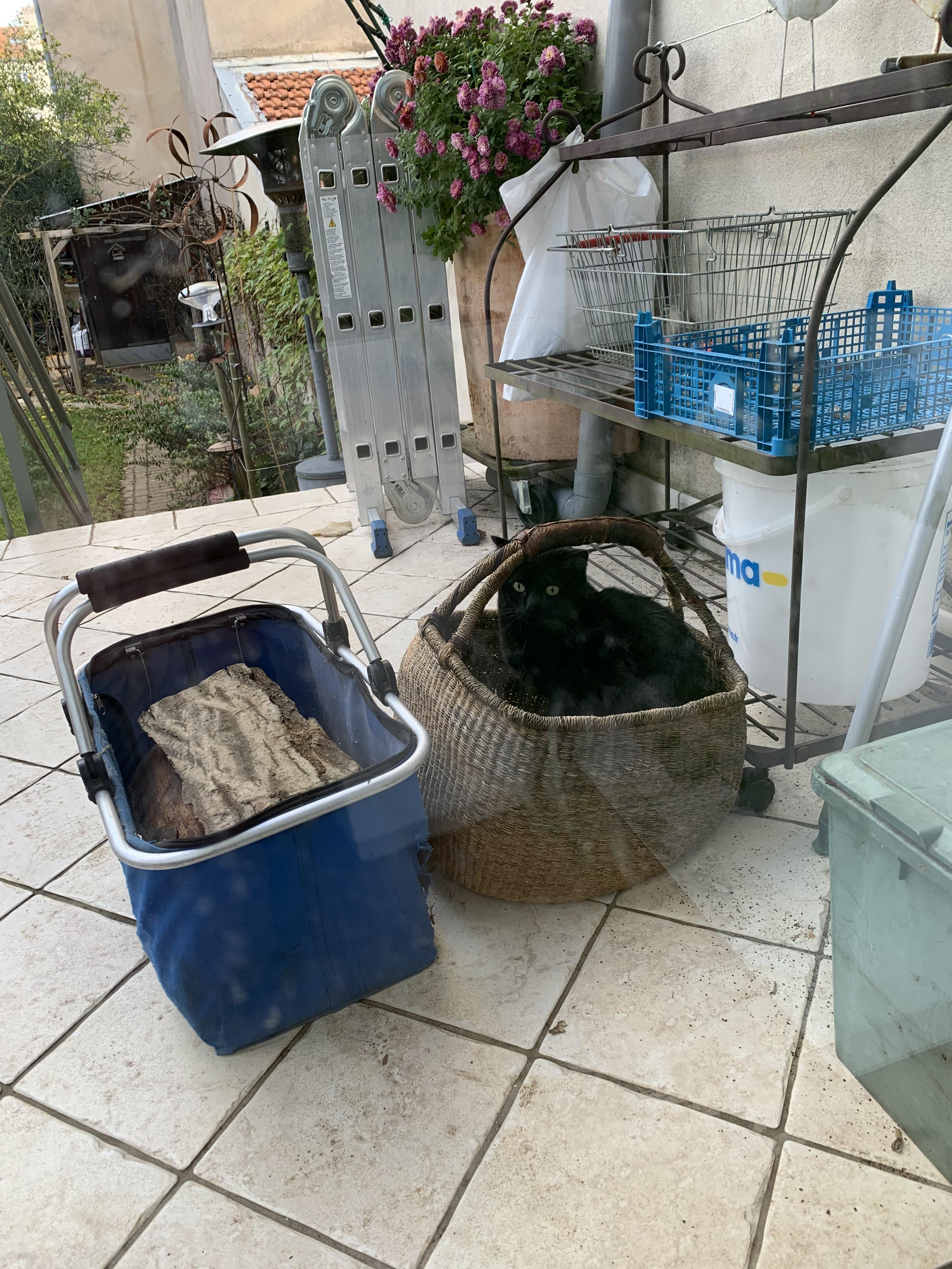 시아버지께서 문앞에 두신 장작 바구니 속에 태연하게 앉아있는 고양이는 이스탄불이 아니라 옆집 암고양이 틱스다. 모웬과 이스탄불이 맨날 도망만 다니니 이제는 당당하게 문앞까지 와서 저러고 논다.