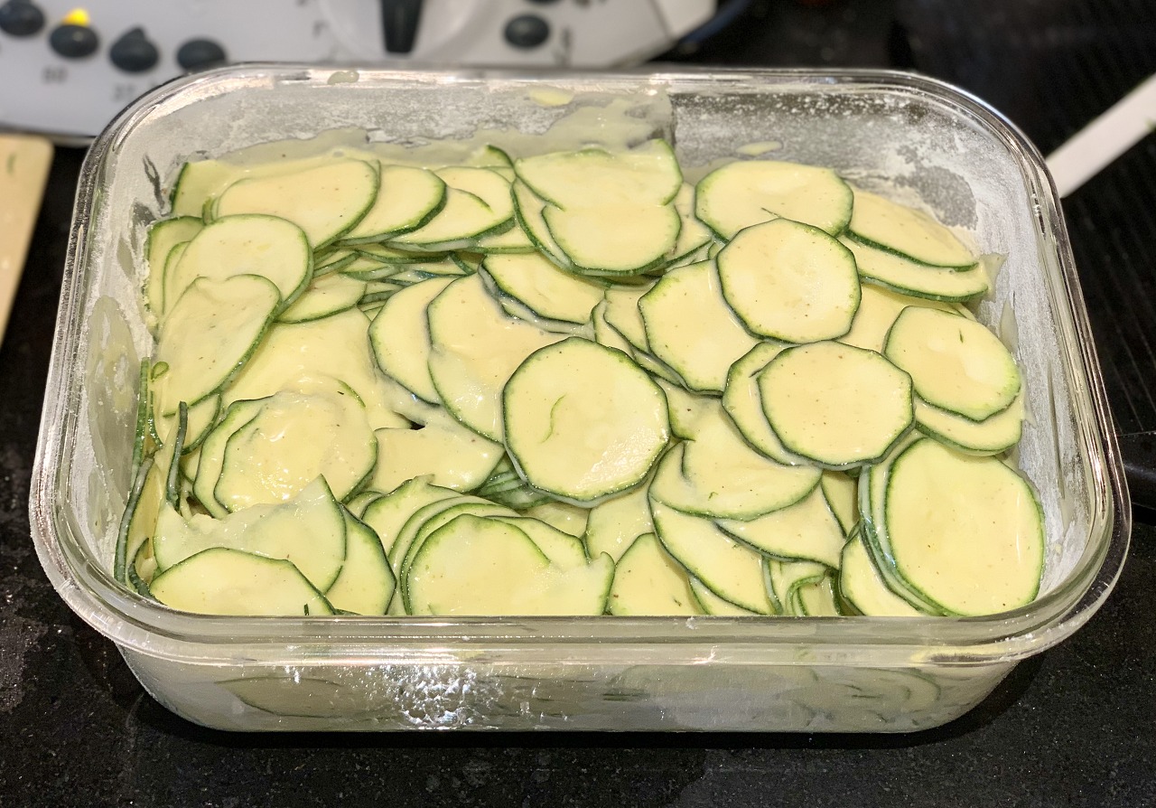 쥬키니 700 ~ 750g, 계란 2개, 우유 100g, 밀가루 70g (박력분), 녹인버터 20g (용기 코팅용은 별도), 베이킹파우더 11g, 소금 4~8g (취향껏 가감)