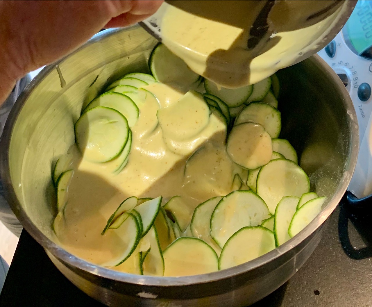 6. 슬라이스 된 주키니와 반죽을 부드럽게 섞어준다. 주키니가 부서지지 않도록 살살...