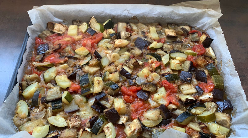 저는 쥬키니, 가지, 토마토, 양파, 마늘을 했어요. 저희 시어머니는 파프리카, 호박, 버섯도 자주 넣으세요. 특히 저는 얇게 쎃어서 구워낸 호박도 맛있더라구요!