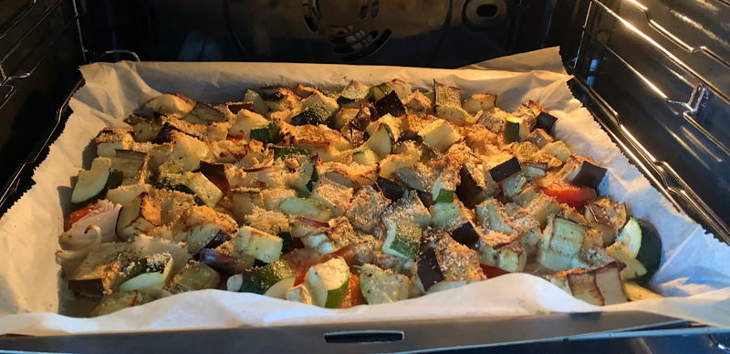 [재료: 여러가지 야채, 소금, 올리브오일, 빵가루, 타임(생략가능) ]