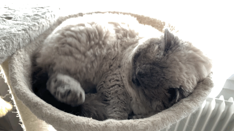오후에는 창가 캣타워에서 햇살을 받으며 낮잠을 자는 무식이.