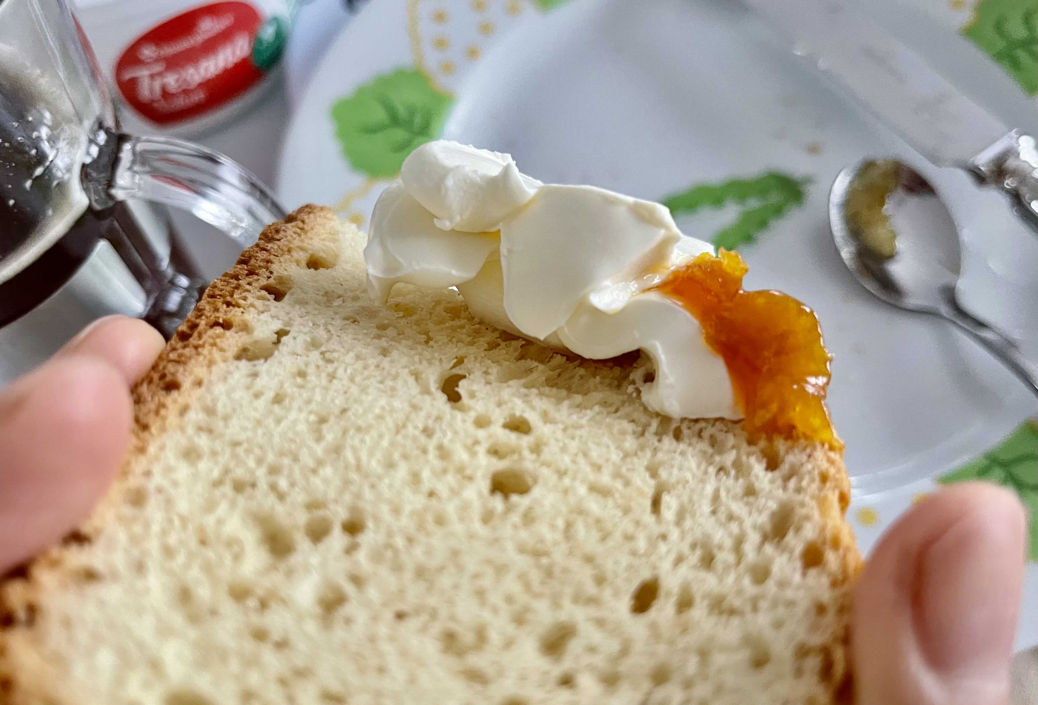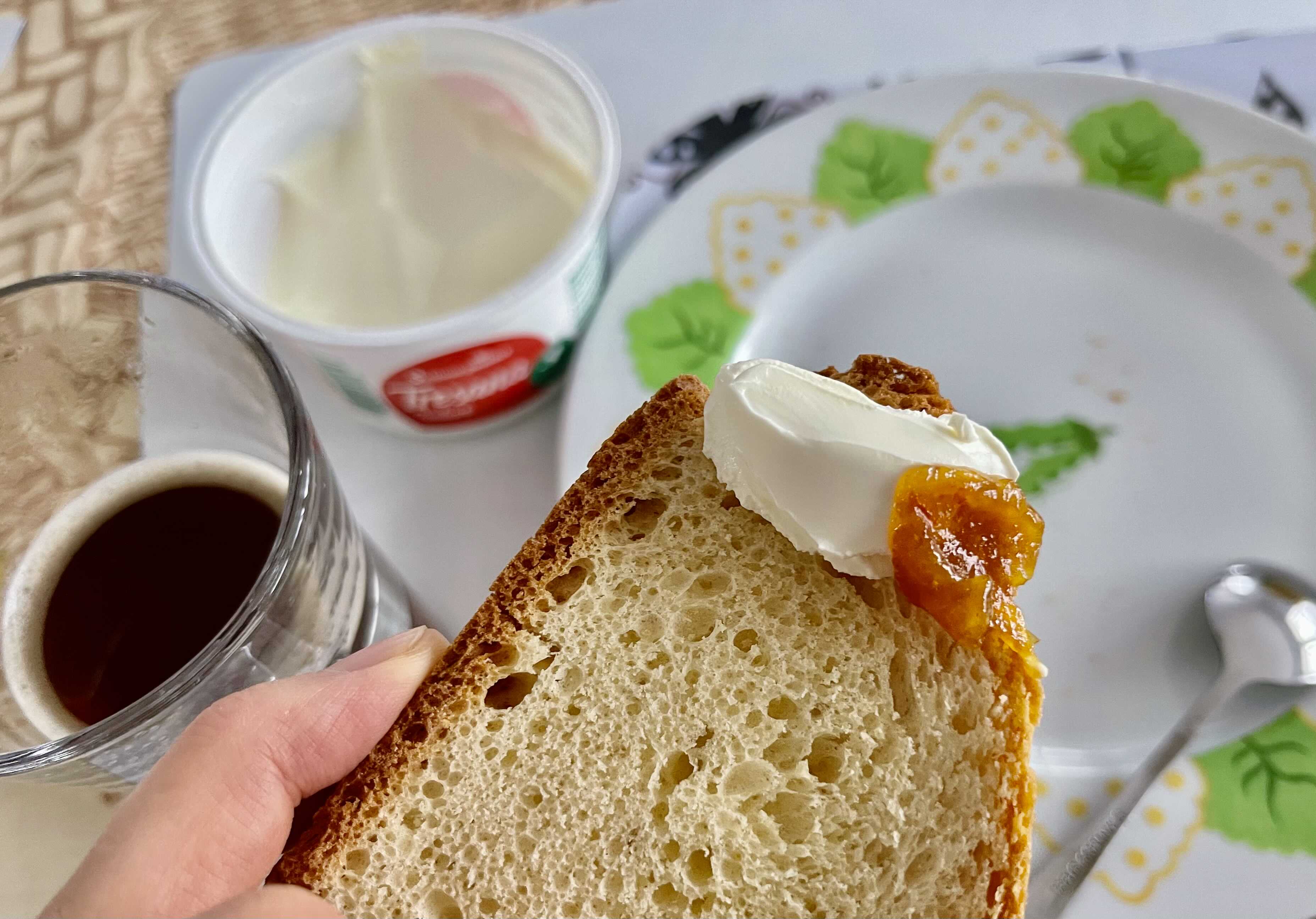 빵은 일부러 한조각만 구웠다. 목적은 크림치즈를 먹는거기 때문에 빵은 조금씩 먹고 크림치즈를 많이 먹기!