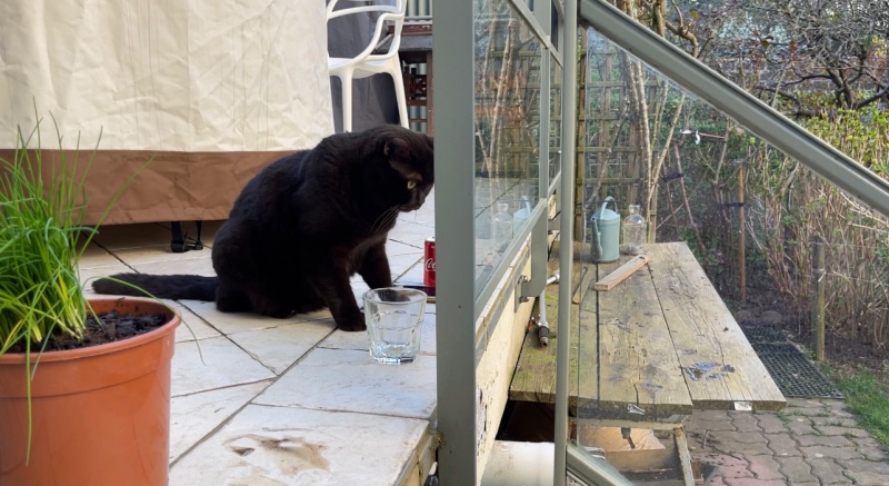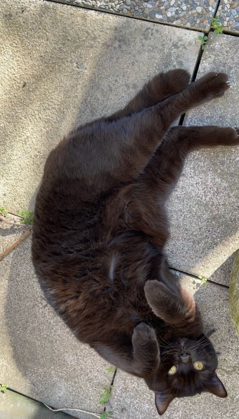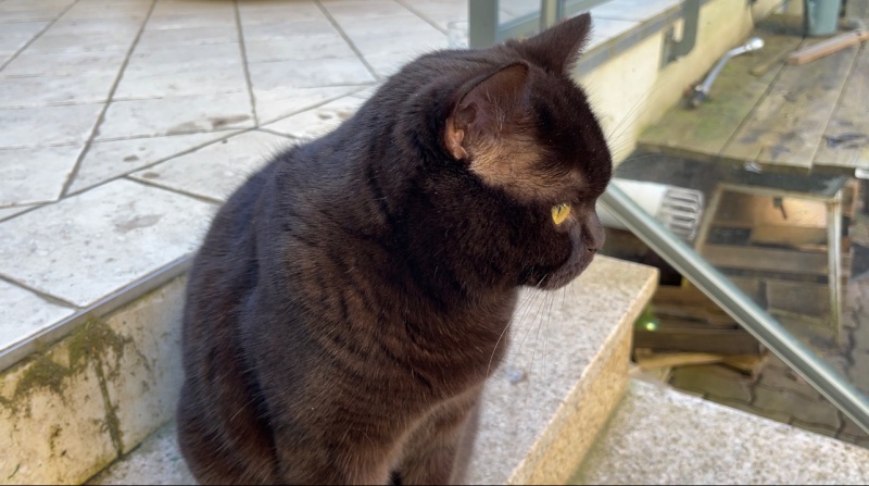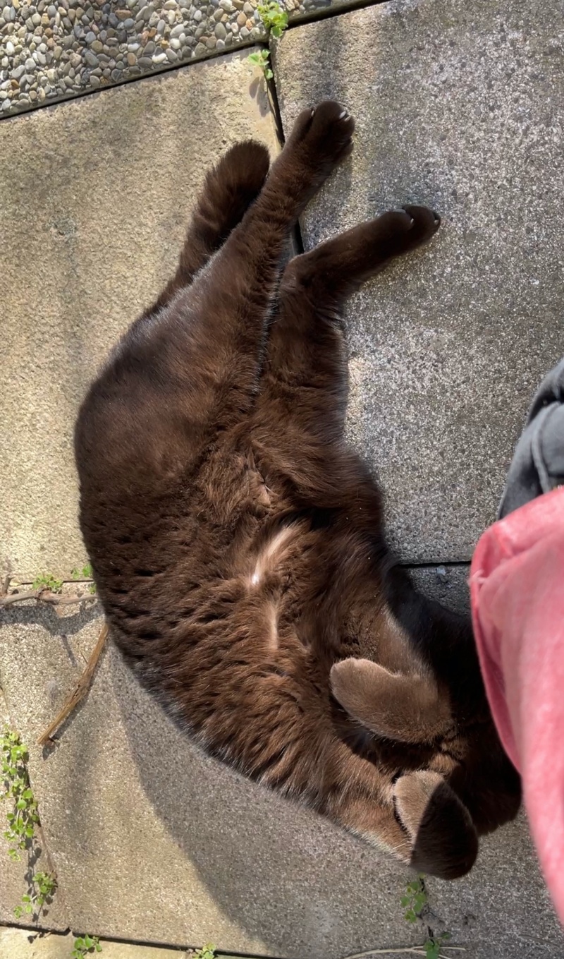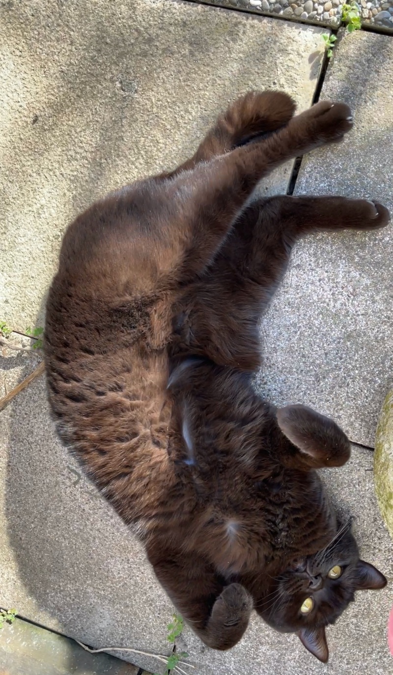 시댁 정원에서 시어머니와 콜라를 마시며 일광욕을 하고 있을때 고양이들은 내 뒷자리를 차지하기 위해 다투었다.