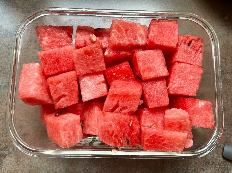 제일먼저 내가 가장 좋아하는 수박을 손질했다. 큐브로 잘라서 유리통에 담아놓고 두고두고 먹으려고 했는데 딱 하루만에 다 먹었다. ㅎㅎ