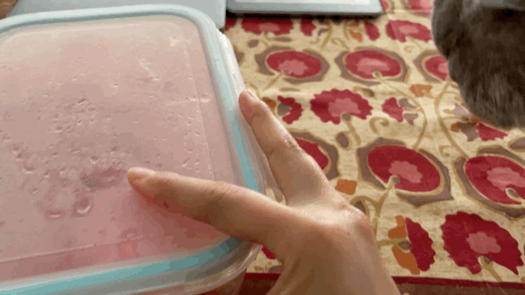 점심먹고나서 냉장고에 있던 수박통을 꺼내왔더니 쪼르르 달려와서 통에 매달리는 무스카델.