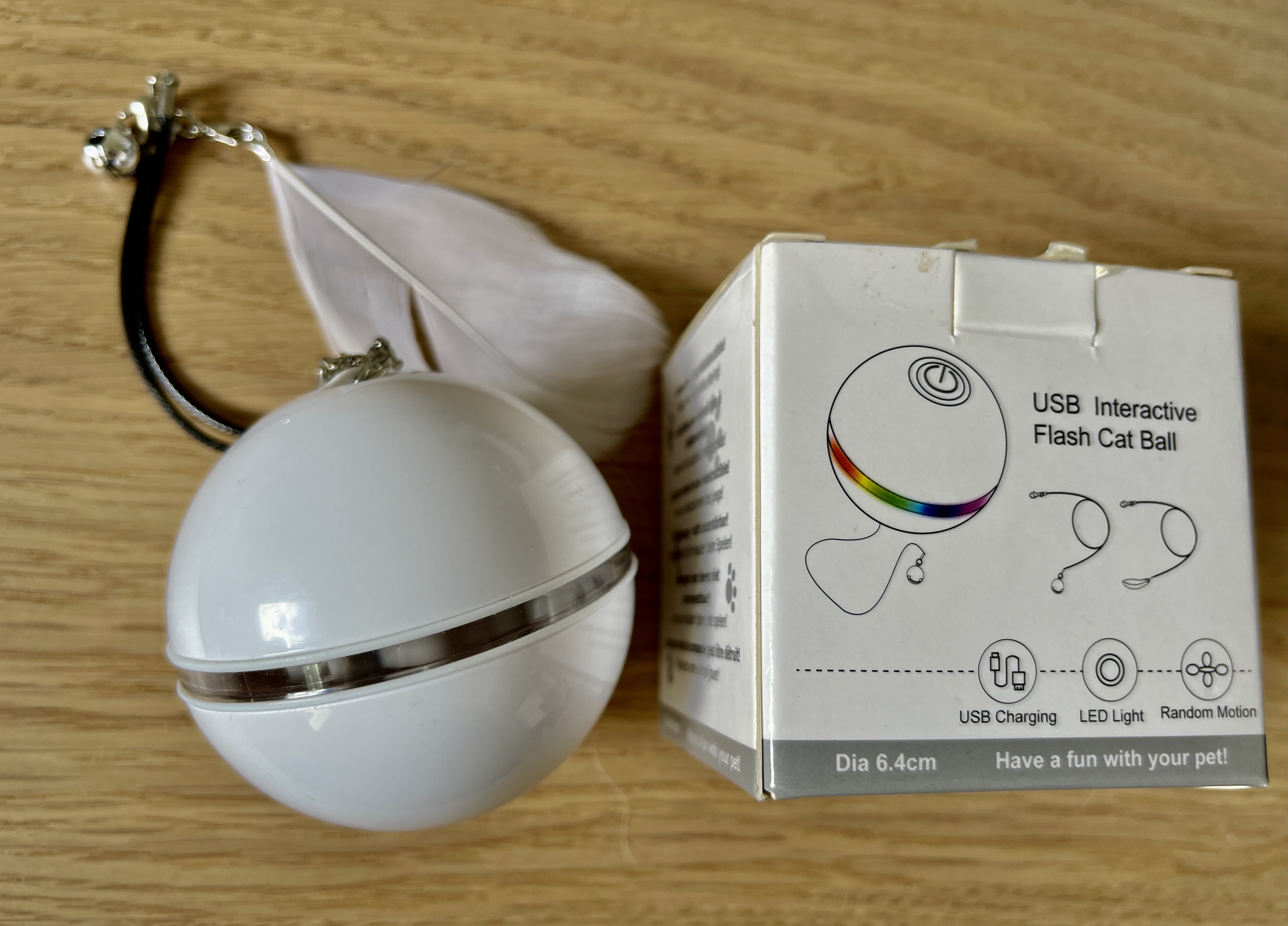 스위치를 켜면 노래방스러운 알록달록한 조명을 쏘면서 혼자 떼굴떼굴 구른다. 방울이 달려있어서 구를때마다 방울 소리도 난다.
