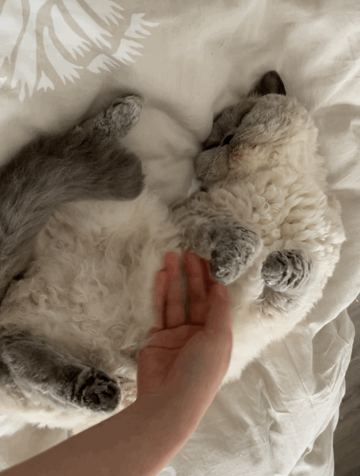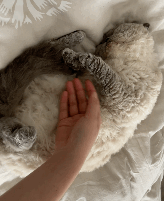 우리 무스카델은 배가 뽀송뽀송하다. 몰랑몰랑한 모웬과 감촉이 사뭇 다르다.