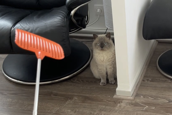 소파밑에서 겁먹는 표정으로 파리채를 경계하고 있음 ㅎㅎㅎ