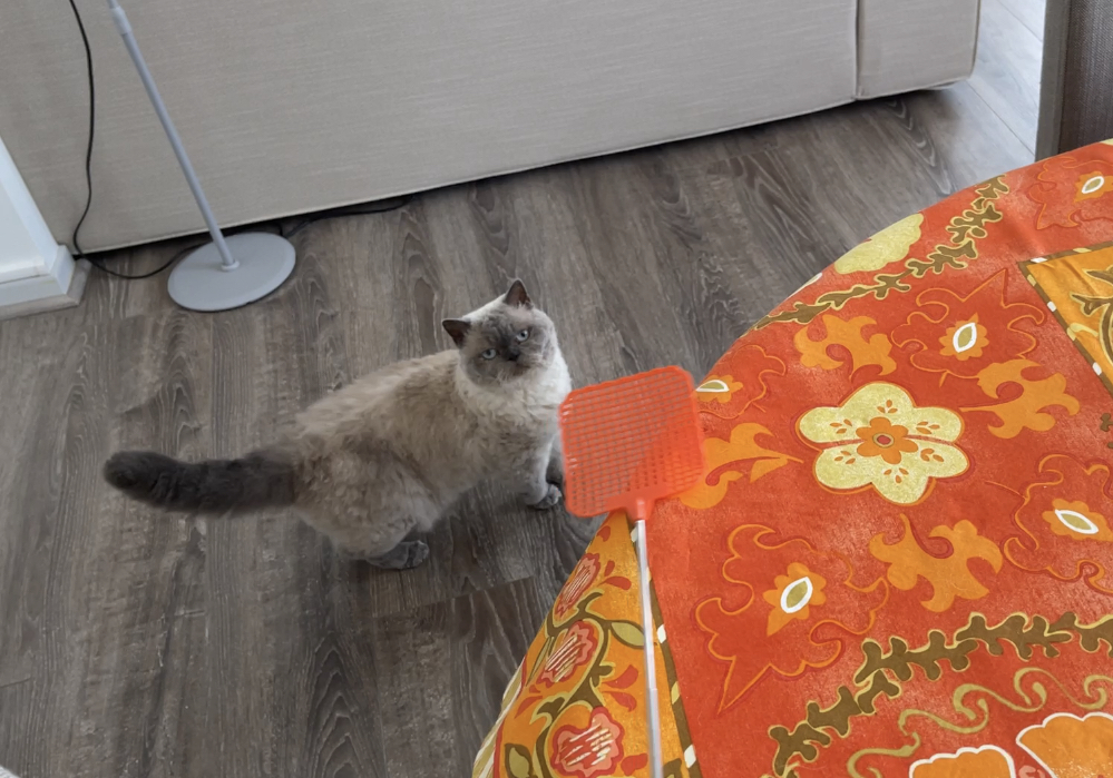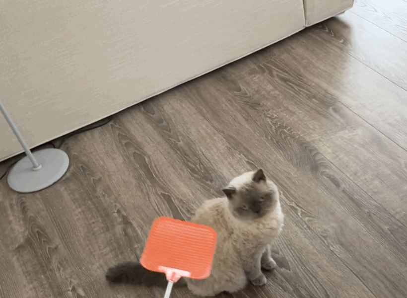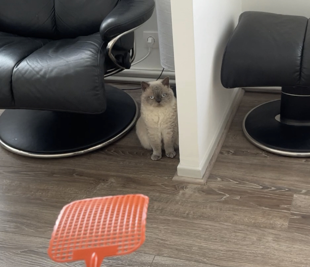 소파밑에서 겁먹는 표정으로 파리채를 경계하고 있음 ㅎㅎㅎ