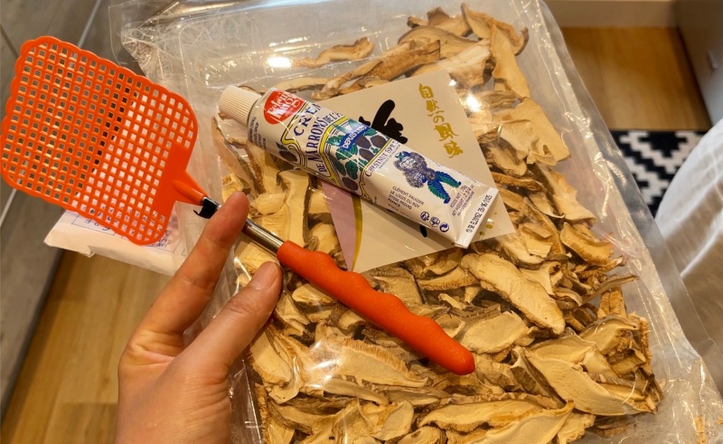 말린 표고버섯과, 밤크림 그리고 바로 파리채!