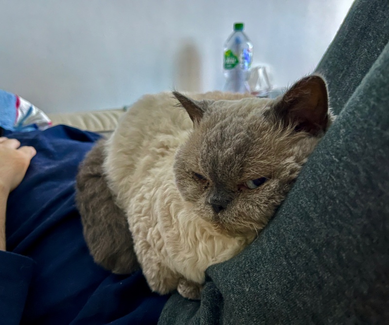 껌딱지 무스카델은 남편이 티비를 볼때는 남편 배위에서 낮잠을 자기도 한다.