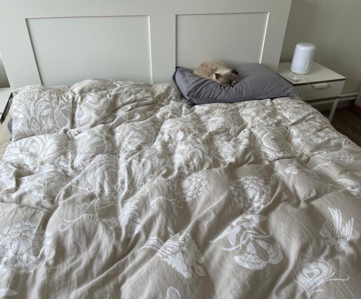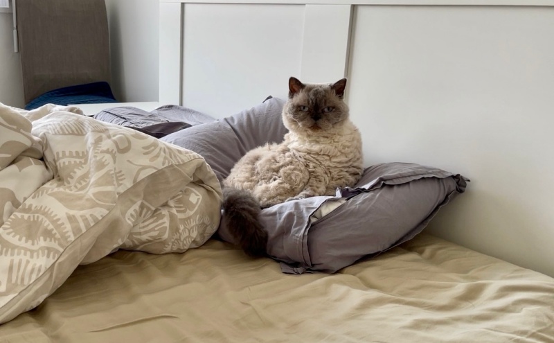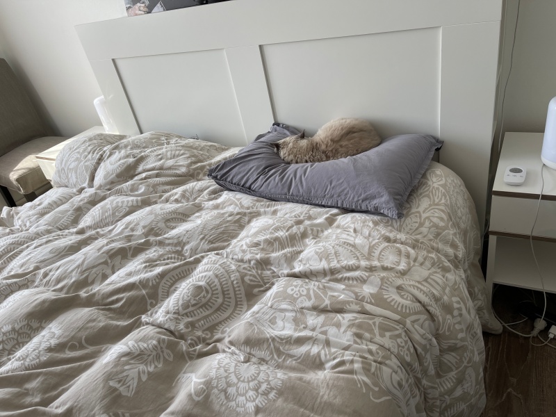 무스카델이 자기 베개에서 떠날까봐 이불정리도 하지 말자는 남편ㅋ