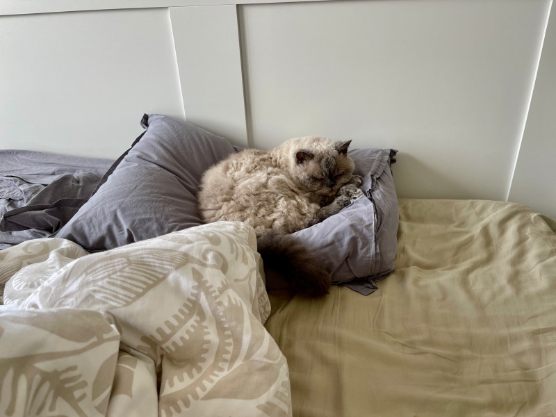한 시간이상 남편 베개위에서 졸다가 자리를 뜬 모습-
