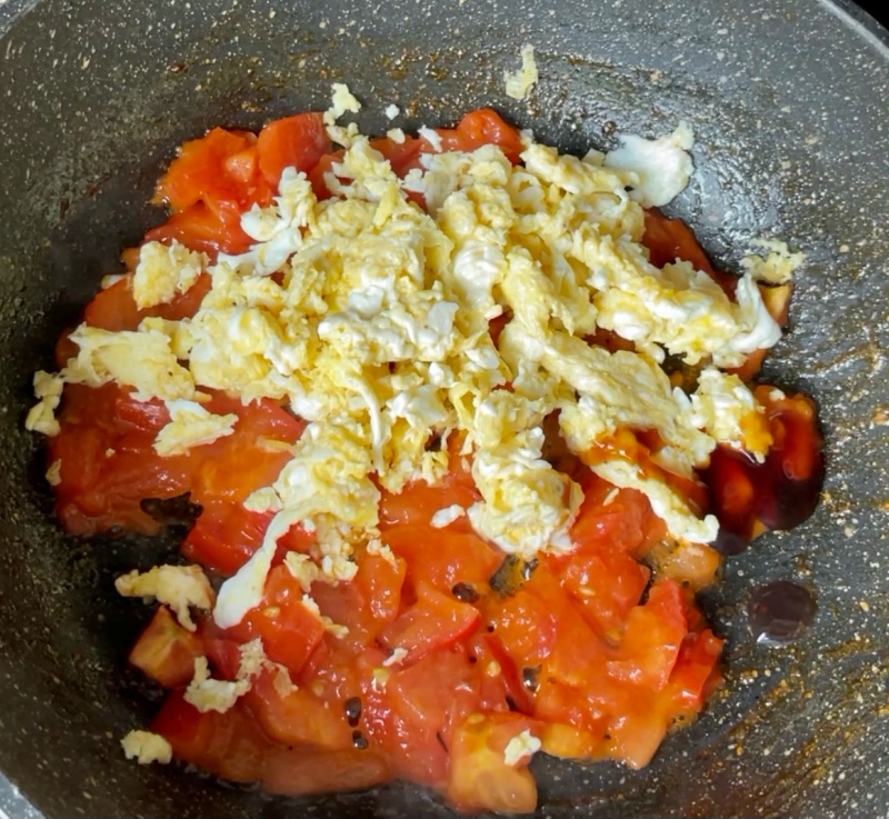 예전에 그냥 계란 스크램블에 토마토를 썰어넣고 볶아 먹은적이 있었는데 맛이 별로 없었던 기억-