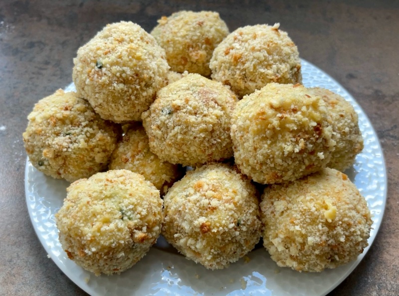 하다보니 요령이 생겨서 속도가 붙었다. 모양은 처음부터 꼼꼼히 잡아줄 필요가 없었다. 계란물도 한쪽에만 풍덩 담근후 비닐장갑낀 양손으로 이쪽저쪽 왔다갔다 던져주니 과하지 않게 적당량으로 표현전체로 계란물이 뭍었고 마지막으로 빵가루를 입혀준 후 한번 더 양손으로 번갈아가며 던져주니 동그랗고 예쁘게 모양이 자동으로 잡혔다. 빵가루도 단단히 고정되고-