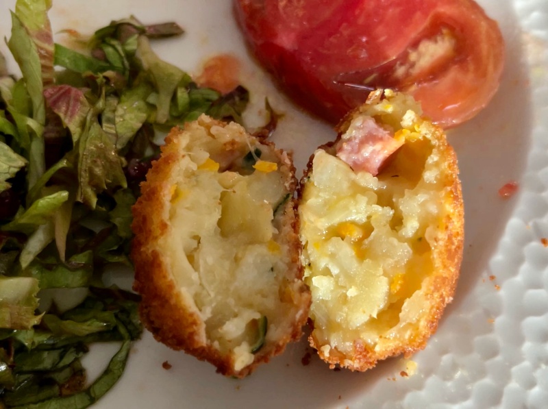재료: 감자 500g, 당근1개, 양파1개, 주키니 반개, 햄 적당히, 빵가루
