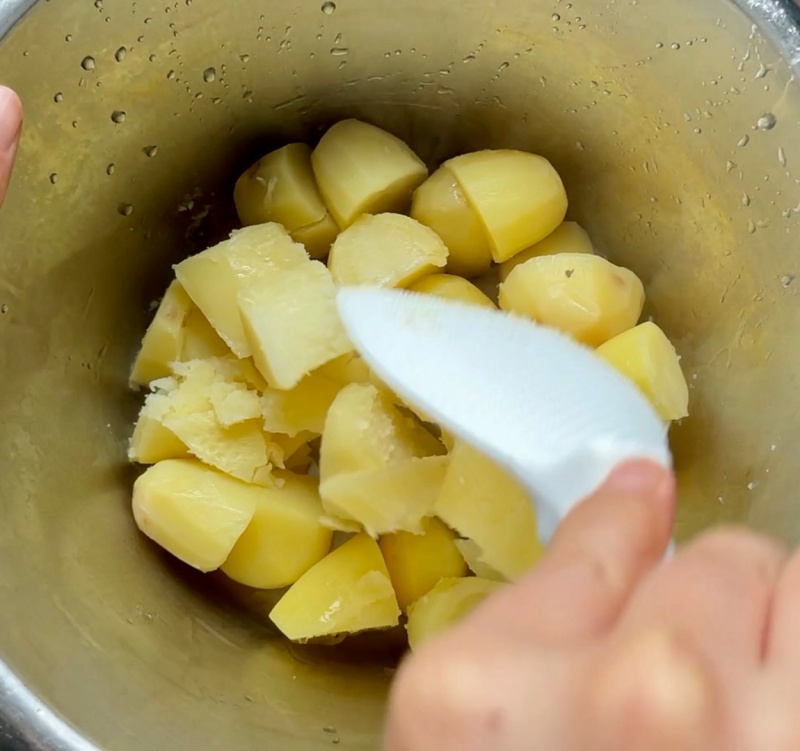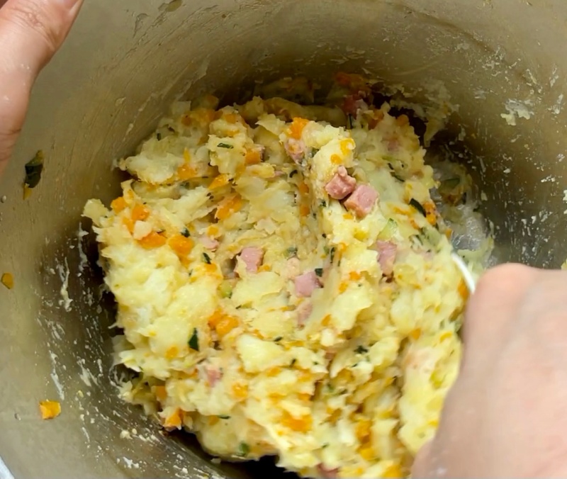 감자는 밥솥에 쪄서 뜨거룰때 밥주걱으로 퍽퍽 찌르면서 대충 으깼다. 덩어리가 살짝씩 씹히는게 난 더 맛있는것 같다.