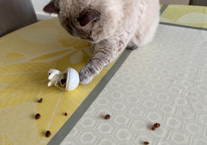"사료는 안먹을거면서 가지고 노는것만 좋아해요."