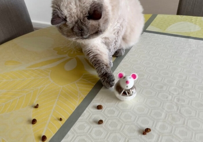 사료를 대충 한입 깨물고나서 다시 생쥐를 툭툭 건드리는 과정을 반복하는 것이다. 더이상 아무 소리가 나지 않을때 까지-