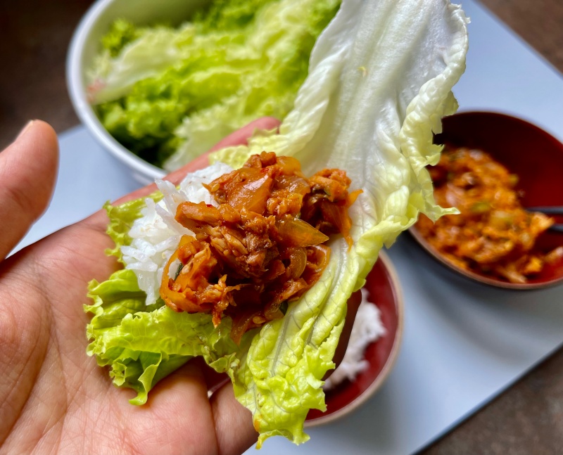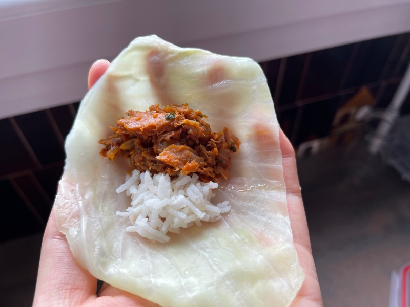 찐 양배추쌈에 싸먹으면 더 맛있다.