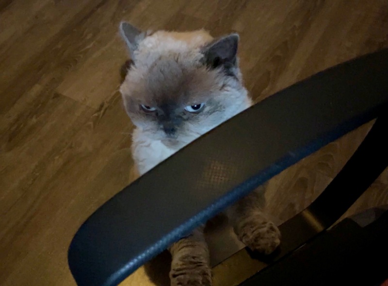 아침저녁으로 내가 책상에서 공부를 하거나 블로그등을 하고 있으면 어김없이 무스카델은 내 의자옆에 앉아서 관심을 달라며 보챈다.