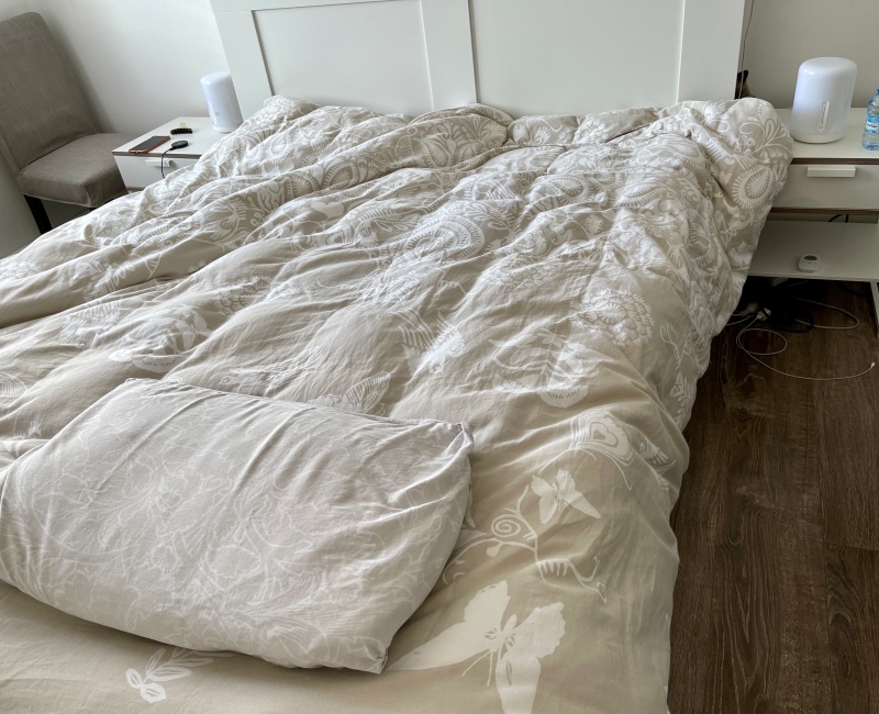 자서방은 자기가 없는 동안 무스카델이 아빠의 체취를 느낄 수 있도록(ㅡㅡ;) 무스카델이 좋아하는 끄트머리 자리에다 자신의 베개를 올려두었다. 그런데 베개 때문인지 무스카델은 낮잠을 다른곳에서 잤다.
