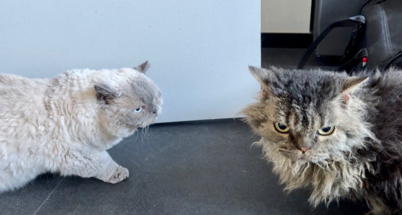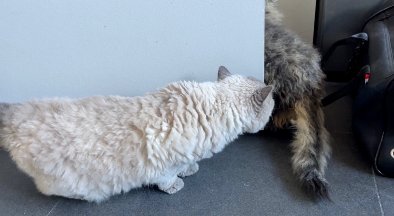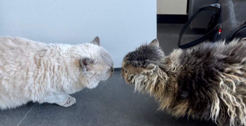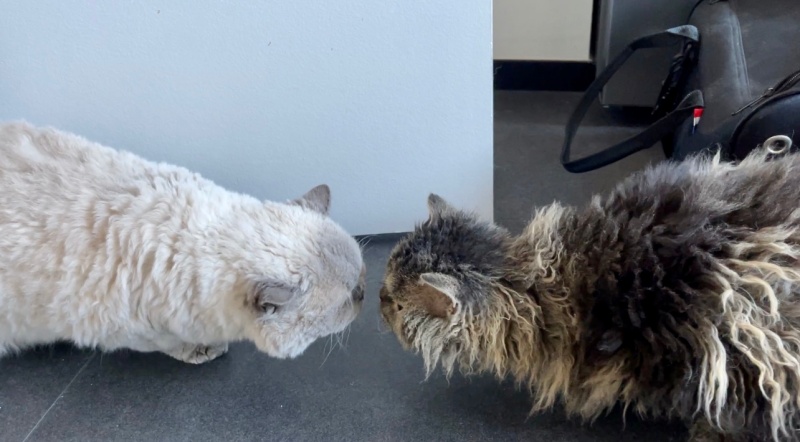 너희 어릴적에 같이 놀았던거 기억나니? (둘은 동갑이고 같은 브리더네서 태어나서 아깽이적에 공동육아로 엄마 냥이들에게 함께 길러졌다. 둘다 성도: 퓨홀다졸 똑같고 이름도 M으로 시작한다.)