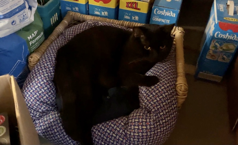 부엌 구석에서 몇시간째 못움직이고 있던 모웬을 보다못한 자서방이 결국 안고와서 거실 캣타워 바구니에 넣어주었다. (이 캣타워도 모웬이 쓰던거…ㅋㅋㅋㅋ)