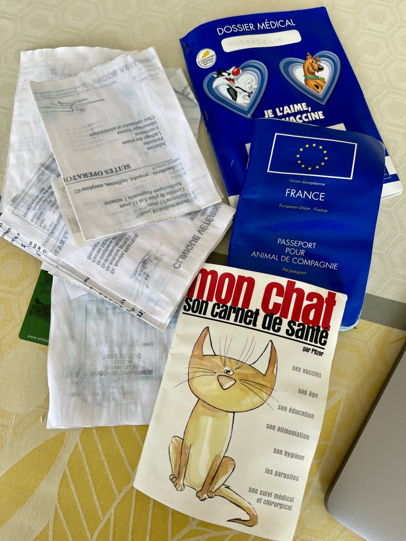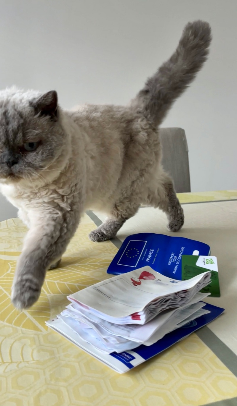 "무스카델이 해외여행 할 일은 없을 것 같으니 여권은 상관없고 백신접종 기록은 동물병원에도 다 기록이 있으니 문제될 거 없어."
