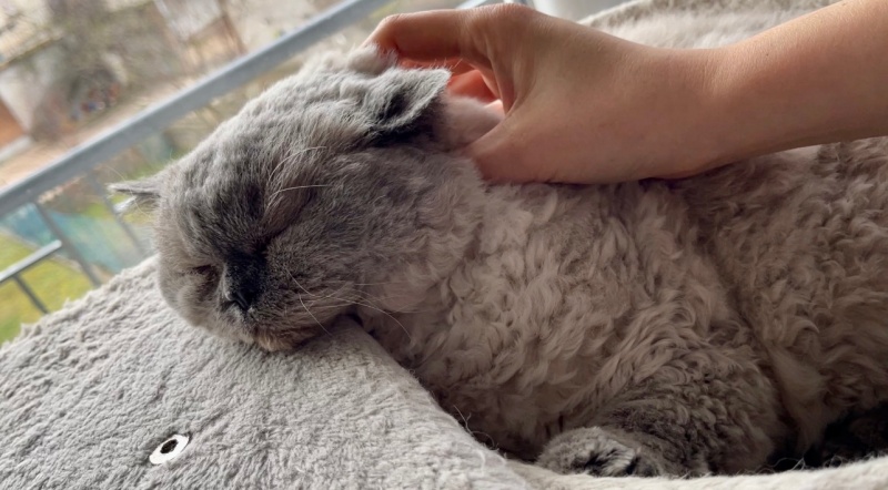 머리를 만져주니 골골소리를 크게 내며 반응을 보이는 무스카델