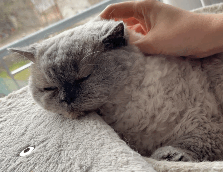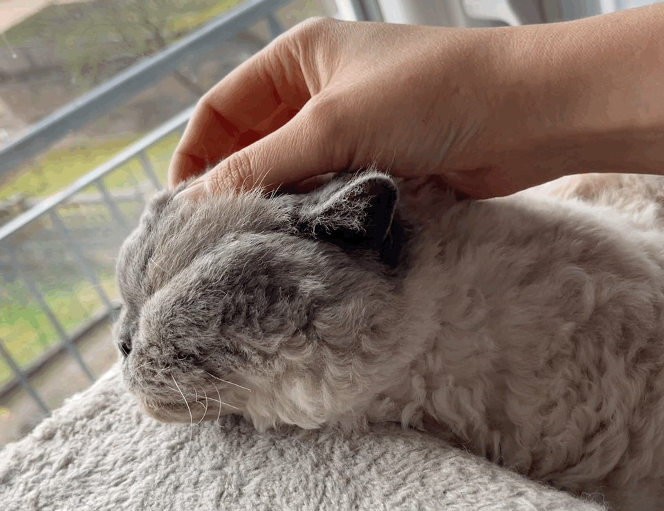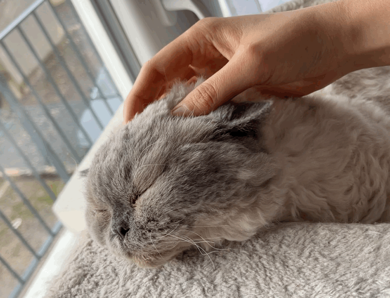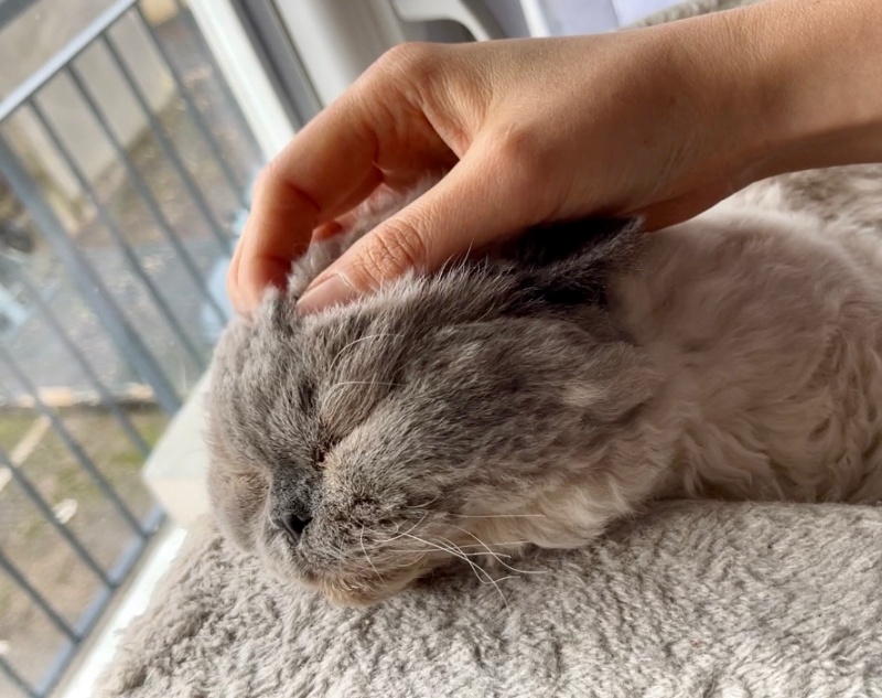 머리를 만져주니 골골소리를 크게 내며 반응을 보이는 무스카델