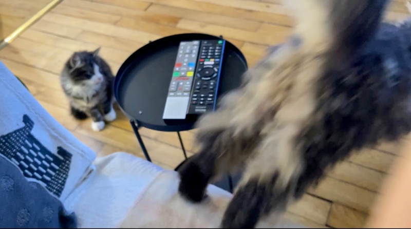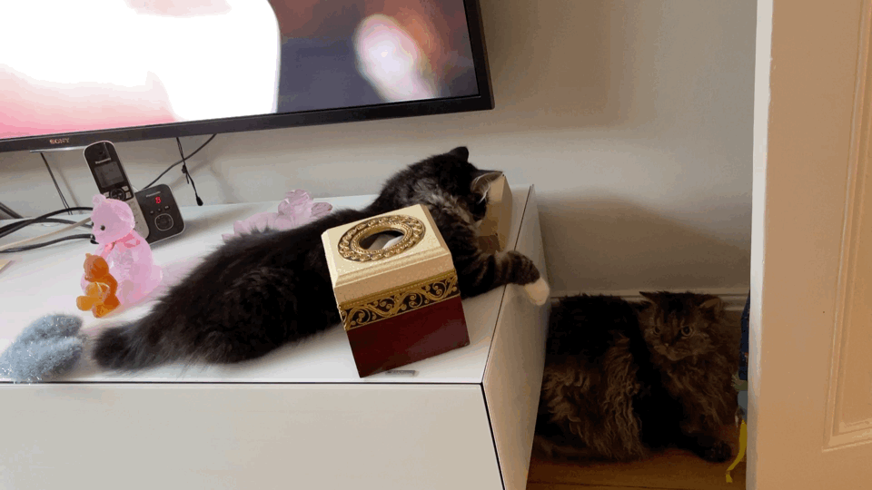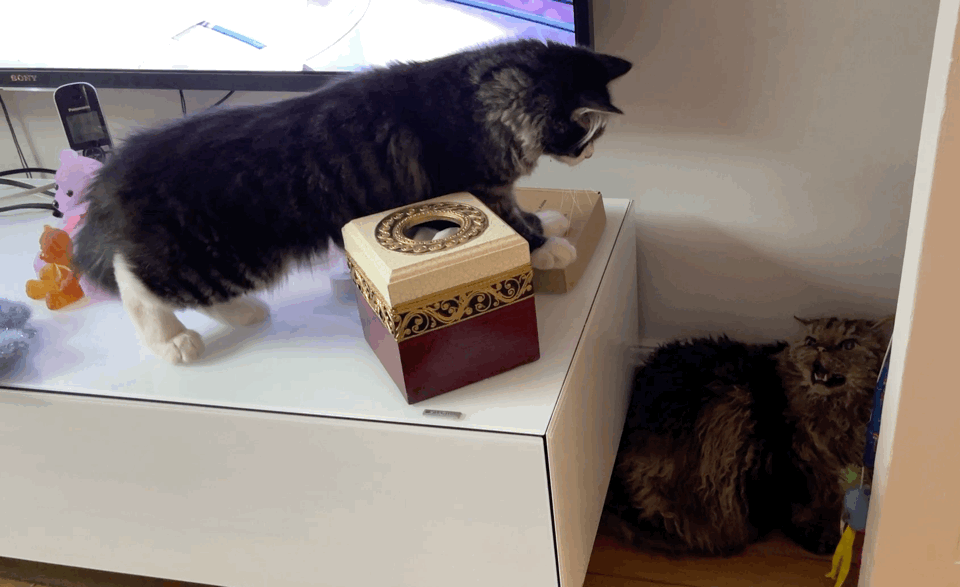 자꾸 구석으로 피하는 모웬이 안타까워서 놀아주려고 했는데 불청객 미니 난입ㅋ