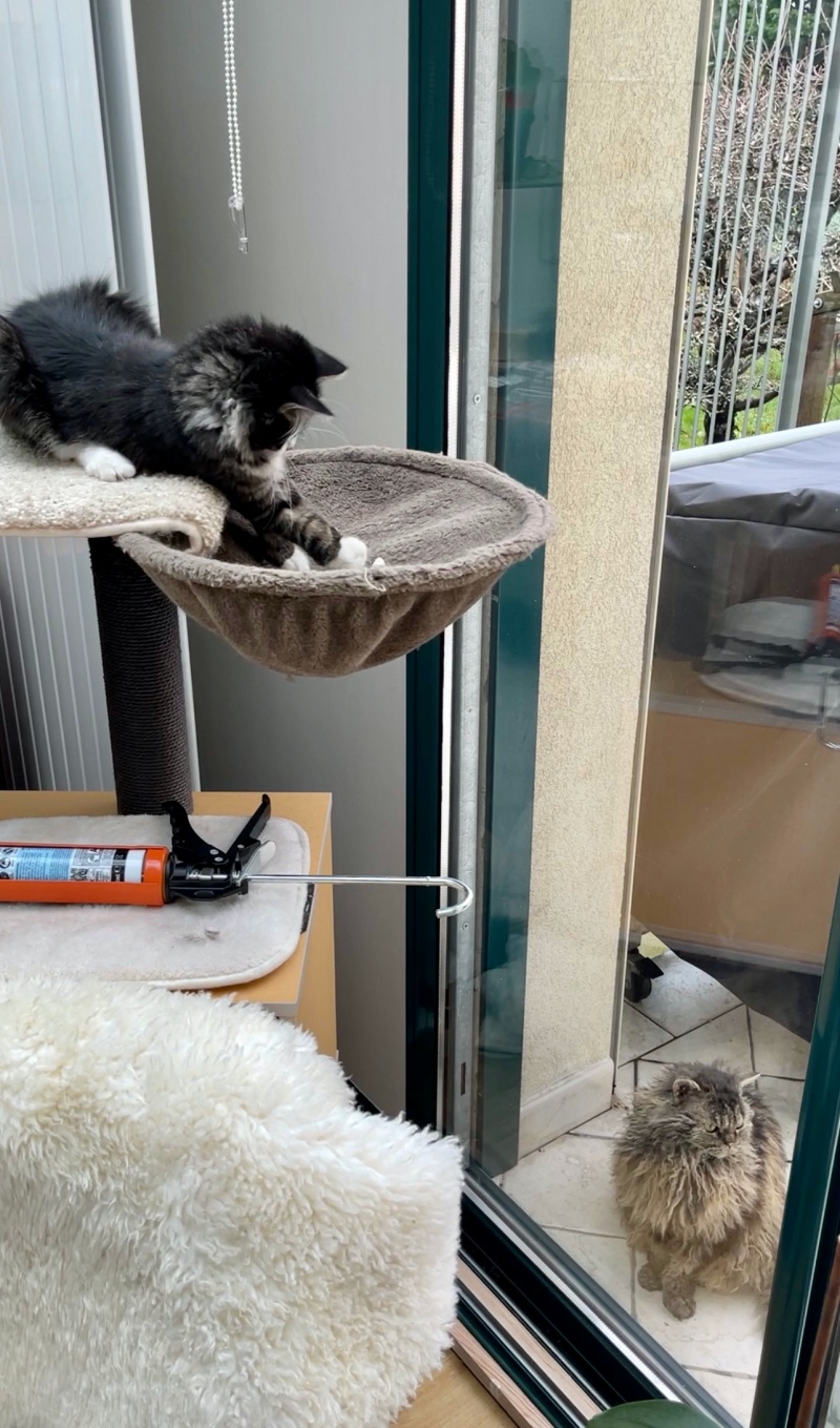 춥다고 외출도 잘 안했는데, 미니에게 캣트리까지 양보하고 밖으로 나가버린 모웬ㅋ