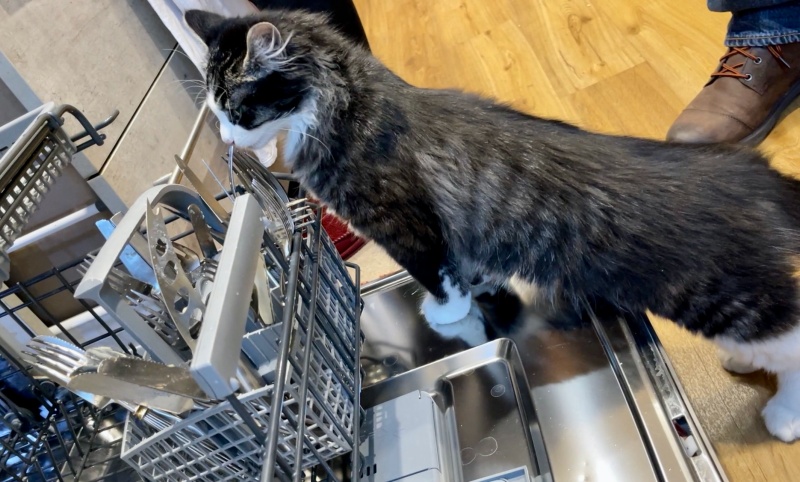 식기세척기속으로 들어가고싶어서 살피는 미니ㅋ