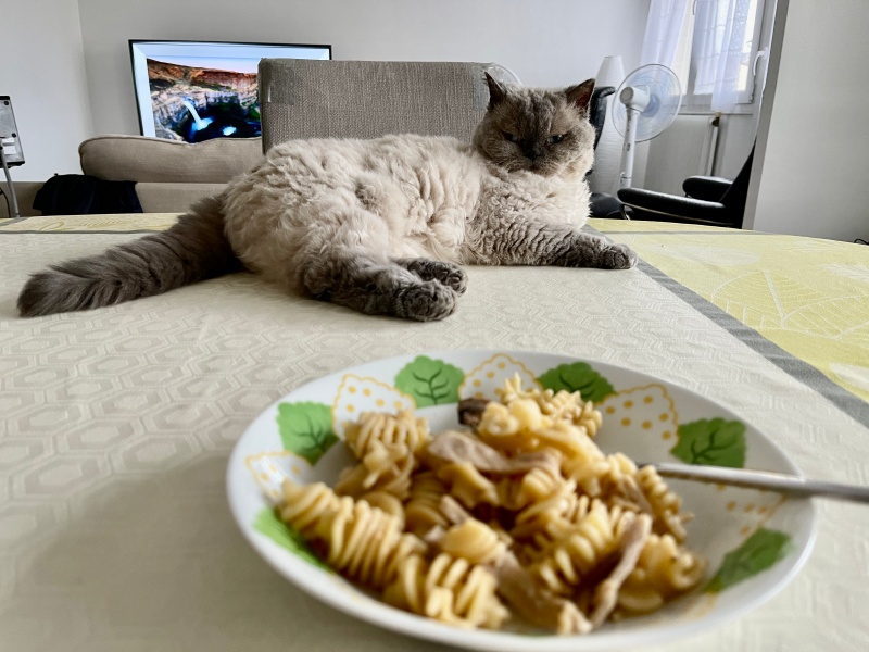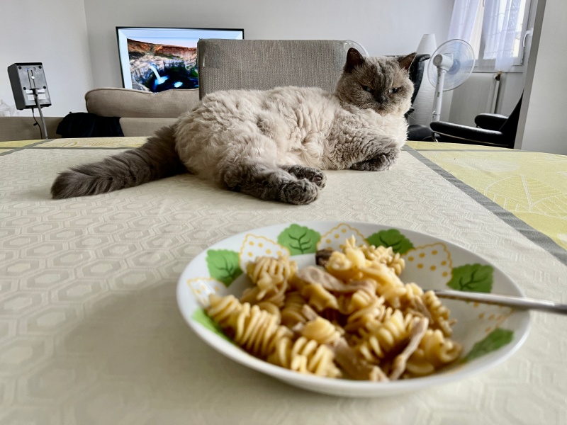 이날은 전날 저녁에 먹고 남은 파스타를 먹고 있는데 또 저런다...
