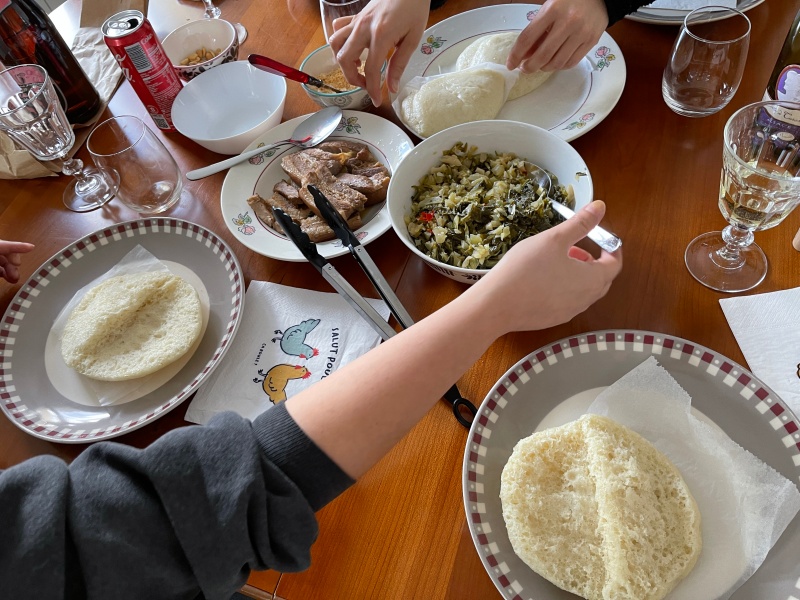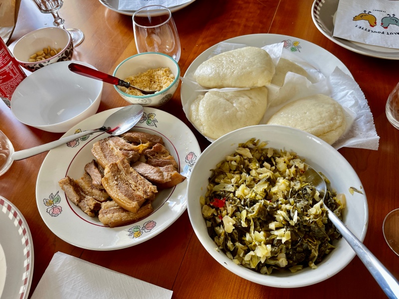 저 머스타드잎이 아주 큰 역할을 한다. 마치 고춧가루가 없는 열무김치나 갓김치 같은 느낌이 나는것이 우리 입에도 참 잘맞았다. 달콤한 찐빵과 고소한 땅콩가루까지 입에 착착 달라붙었다.