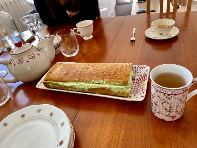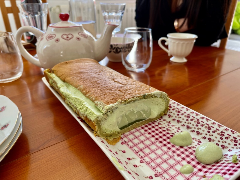 후식은 도저히 못먹을것 같은데... 먹을 수 있으려나 근심하던 찰라, 친구가 내온 거부할 수 없는 비쥬얼의 녹차 케잌!