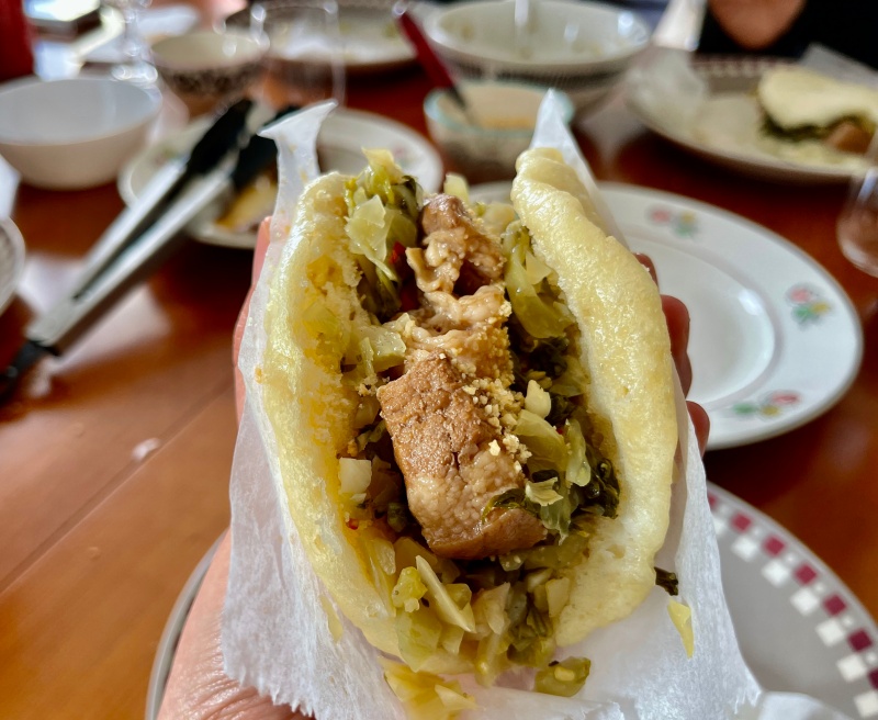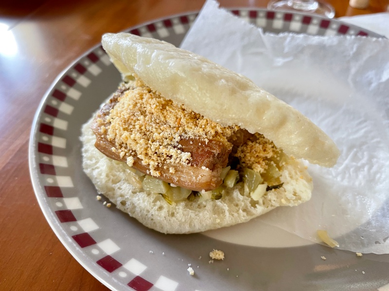 과바오 혹은 꾸아빠우. 저 찐빵안에 나물과 고기 그리고 땅콩가루를 채워서 싸먹는 음식이라고 했다.