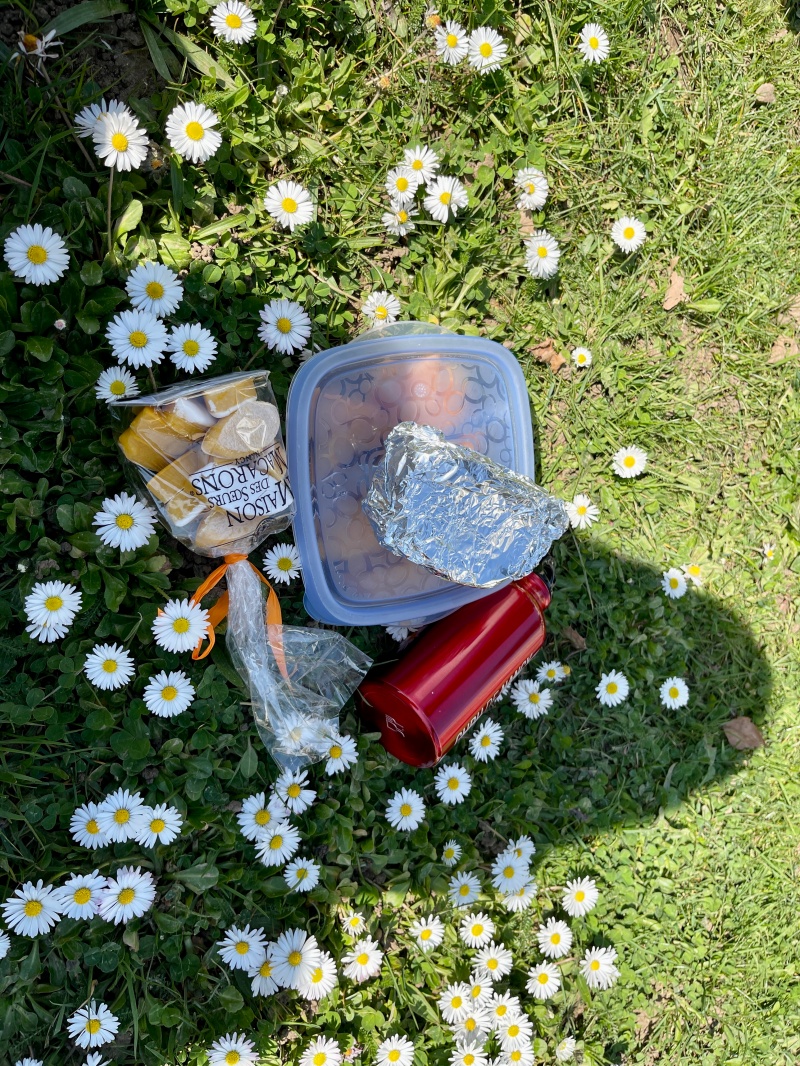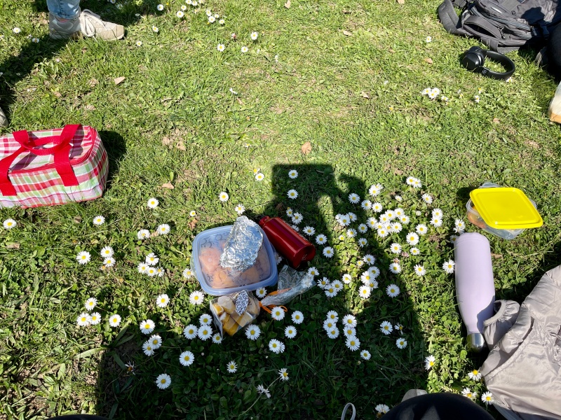 그런 의미에서 오늘 점심은 반친구들과 잔디밭 한가운데에서 먹기로 했다. 참고로 우리 점심시간은 2시간이나 된다!