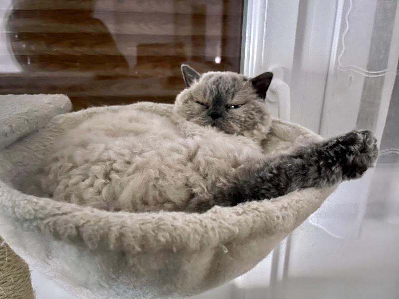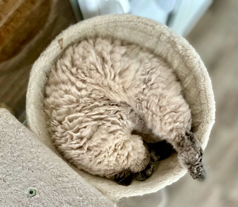 무스카델은 꼭 이렇게 한쪽 다리를 꺼내놓고 자곤 한다.
