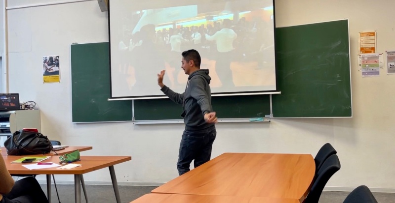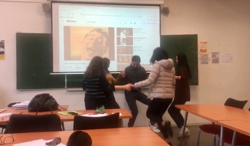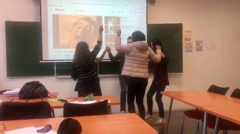 음악이 필요하다는 요청에 선생님께서는 유튜브 음악까지 깔아주셨고 묘하게 흥이 나는 음악에 맞추어 모센은 화려한 손동작과 유연함이 돋보이는 춤사위를 보여주었다. 처음에는 다들 웃었는데 세상에나! 춤을 너무나 잘 추는 것이었다!!!