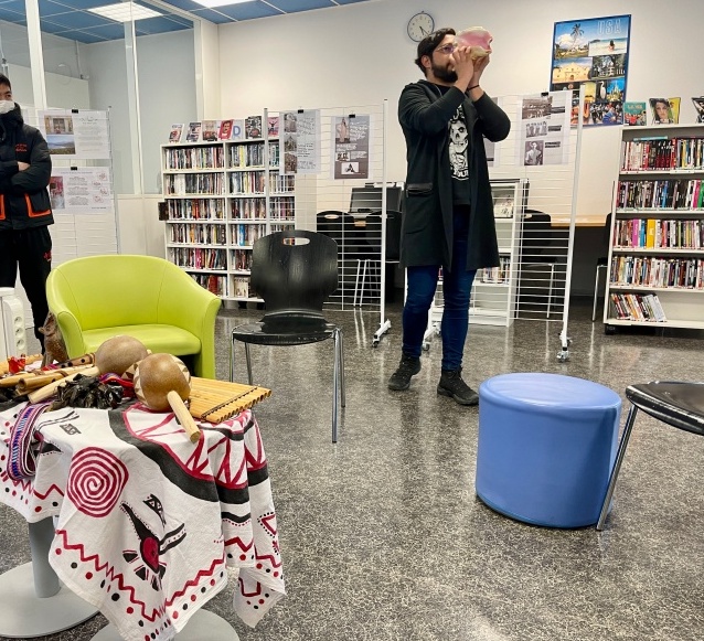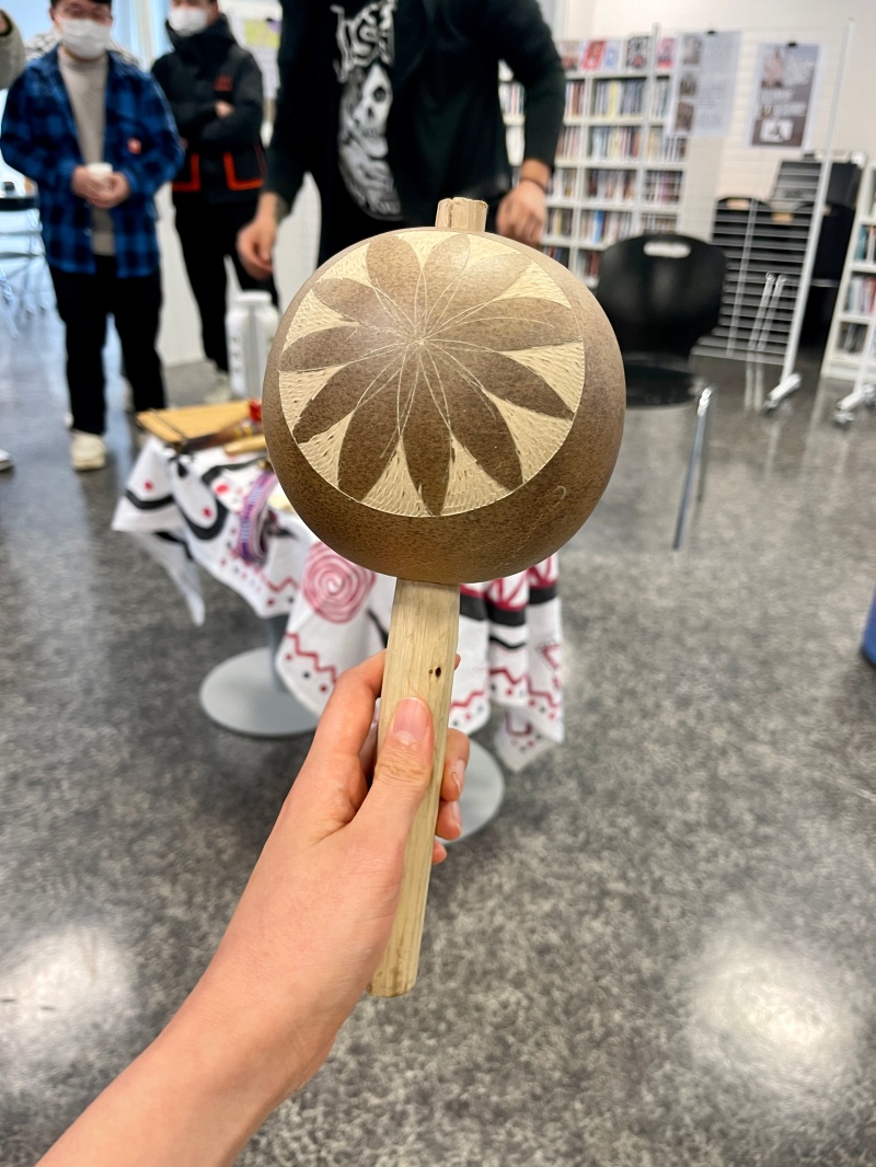 두번째곡을 연주할 때는 악기연주를 도와줄 지원자가 필요하다고 하길래 내가 손을 번쩍 들었고 곤봉같은걸 받아서 연주에 참여했다.