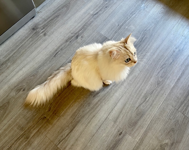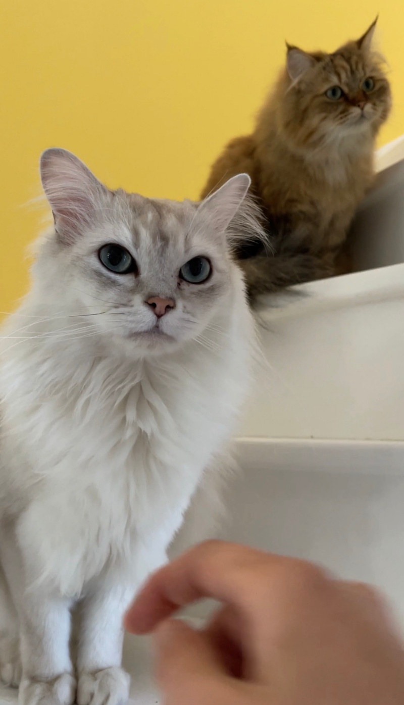 그리고 왓슨뒤에 있는 소심한 표정의 고양이는 히나타인데 그냥 베베라고 부르고 있었다. 엄청 소심하지만 또 도망은 안가는걸 보면 무식이보다 용감한 듯 하다. 내가 만져주면 경계하면서도 은근히 좋아하는 표정.