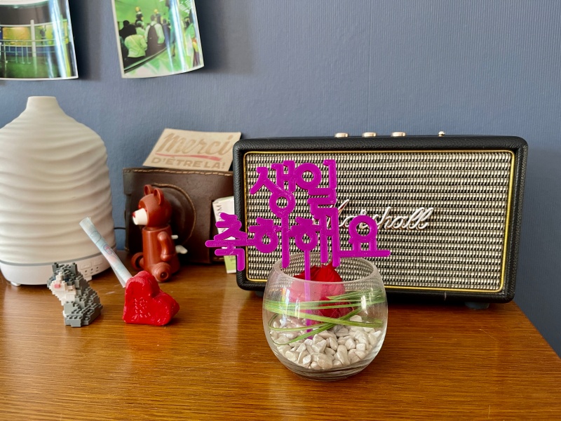 반가운 한글을 발견했다! 남친이 3D프린터로 만들어줬다고 한다.