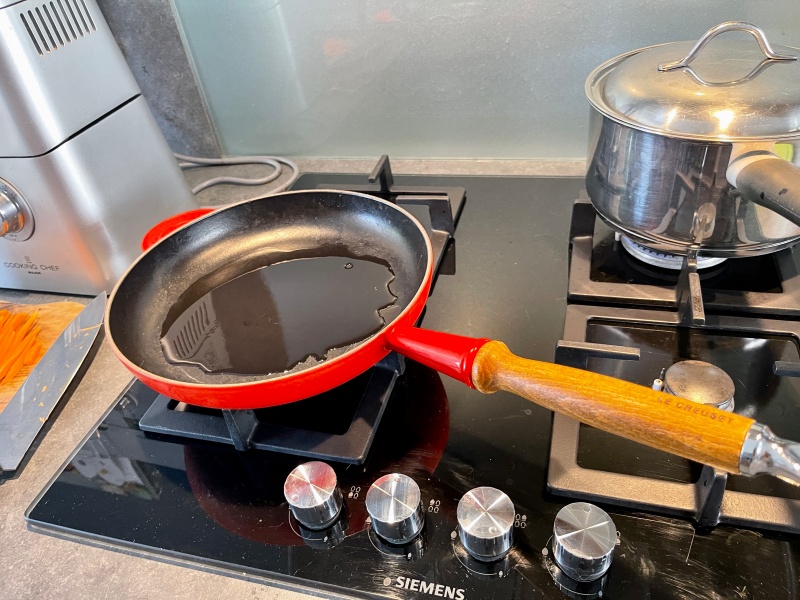 카린이 자랑스럽게 꺼내든 엄청 무거운 주물팬. 우리 시어머니만큼이나 본인의 팬에 대한 자부심이 느껴졌다. 프랑스인들의 귀여운 공통점일지도...? 카린커플은 평소에 집에서 마끼나 스시를 자주 만들어 먹어서 김, 김밥발, 스시용쌀 그리고 스시용식초등의 재료들을 이미 갖추고있었다. 우리는 두가지 김밥을 만들었다. 우선은 소시지김밥인데 소시지를 채썰어서 데리야키소스 비스므리하게 졸여서 사용했다. 어묵이 없으니 아쉬운대로 평소에 내가 잘 해먹는 방법-