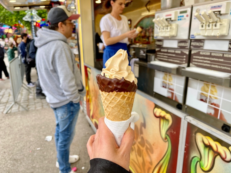 아이스크림도 하나씩 먹었는데, 홈메이드 와플콘에 땅콩맛과 바닐라맛 두가지 아이스크림을 한스쿱씩 주문했다. 5유로였던가..? 땅콩맛은 탁월한 선택이었다!