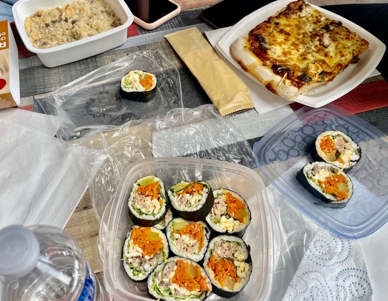 나는 점심 도시락으로 참치김밥+소고기김밥을 싸왔다.