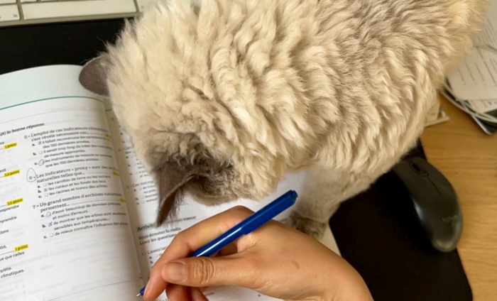 "집사야. 나 안쳐다볼테니까 신경쓰지말고 공부해라."
