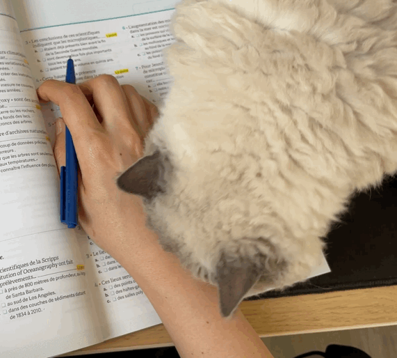 "집사야. 나 안쳐다볼테니까 신경쓰지말고 공부해라."